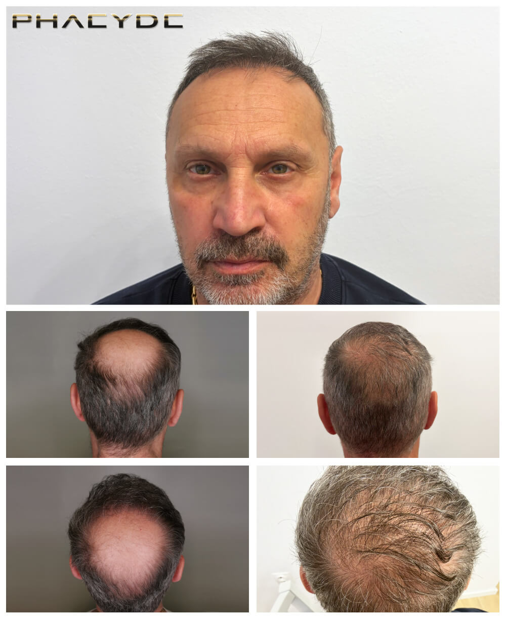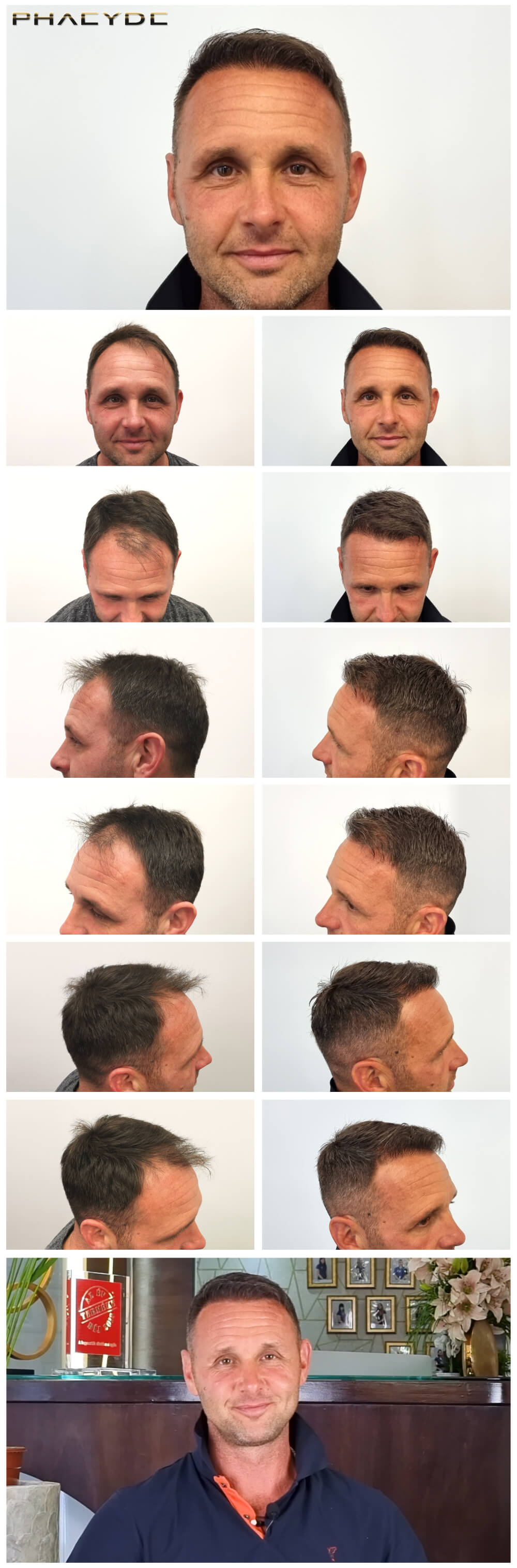 På följande före och efter bilder kan du se de fantastiska hårtransplantationsresultaten av de behandlingar som genomfördes vid PHAEYDE s Ungern klinik.